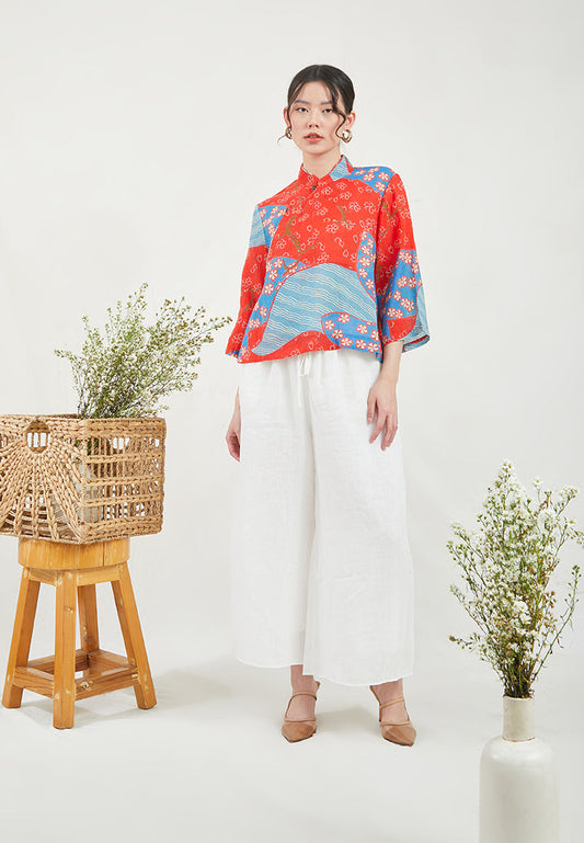 Red Sakura Print Cheongsam Top